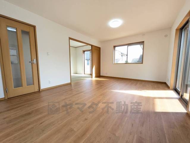 大きな掃き出し窓のあるリビングは、陽光あふれる明るい空間です。ゆったりと寛げる憩いの場となりそうです。