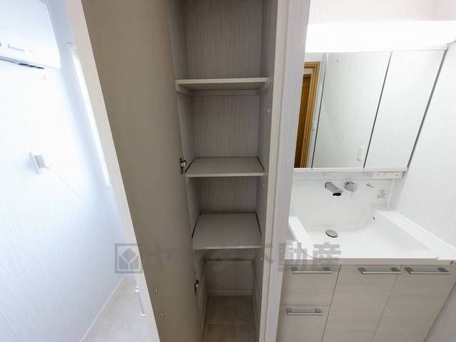 洗面台横には収納スペース付き^^タオルや衣類の収納に便利^^