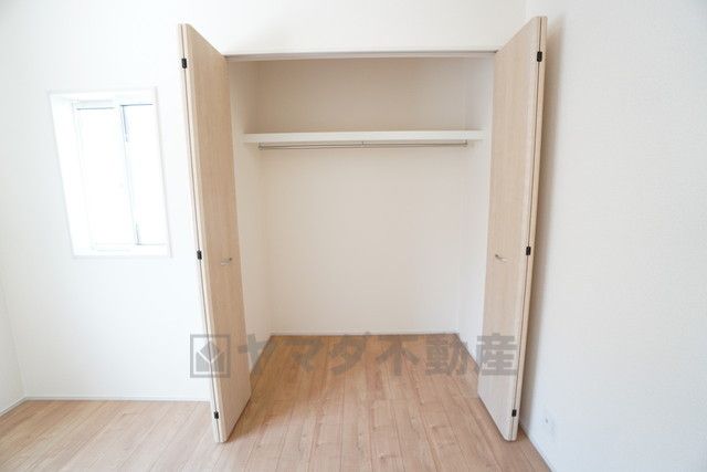 洋室にはハンガーパイプ付きのクローゼットが設けられています。たっぷり収納できるので衣替えの心配もいりませんね^^