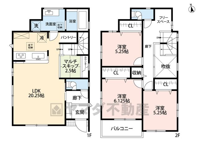 LDK20.2畳(1F)、その他2.5畳(1F)、洋5.2畳(2F)、洋6.1畳(2F) |