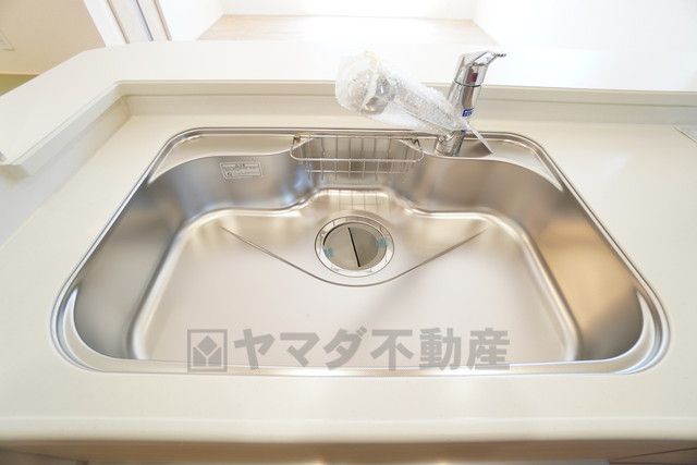 大きなお鍋も楽々洗える幅の広いシンクです^^ステンレスシンクなので簡単にお掃除できますよ。洗剤やスポンジもすっきりできる収納付き。