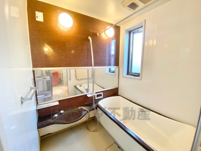 1日の疲れを癒すくつろぎのバスルーム。足を伸ばしてもゆったりと入れるサイズです。お子様と一緒にお風呂に入っても狭くないですね^^