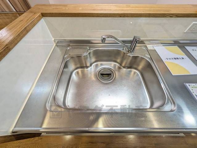 大きなお鍋も楽々洗える幅の広いシンクです^^ステンレスシンクなので簡単にお掃除できますよ。