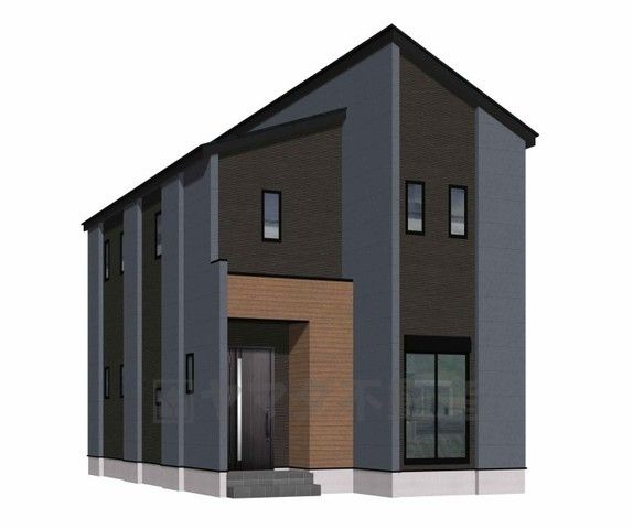 深みのあるネイビーとブラックのツートンカラーが、都会的で洗練された印象。玄関ポーチ部分に大胆に配置された明るい木目調のアクセントが、「住まいの温もり」をプラスしています^^