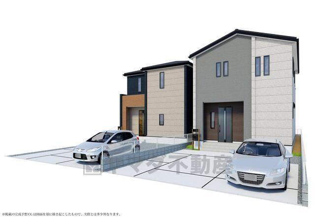 右側が1号棟。完成予想図。現況と異なる場合は現況優先となります。