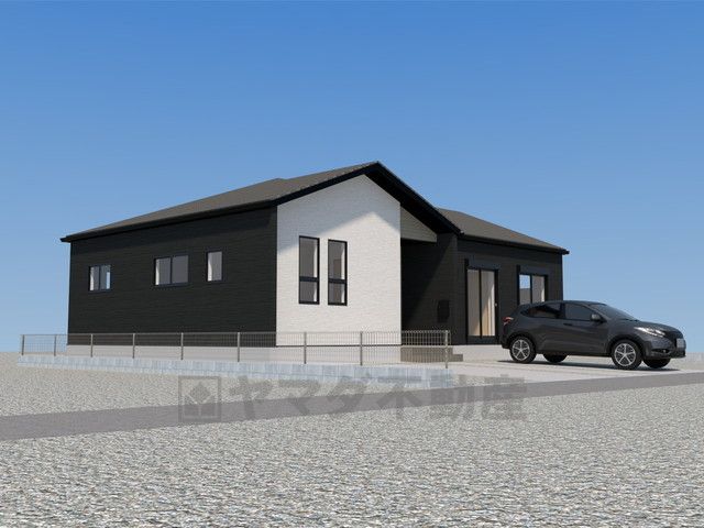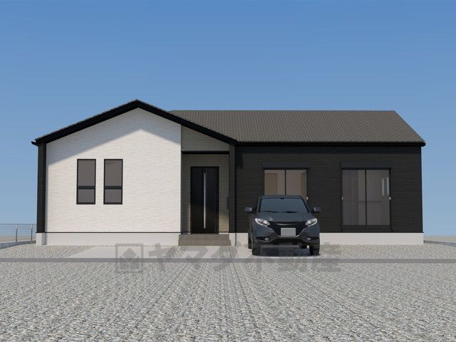 完成予想図。現況と異なる場合は現況優先となります。シンプルでいつまでも飽きのこないデザインが周囲の環境に調和し、どんなご家族にもフィットするデザインです。