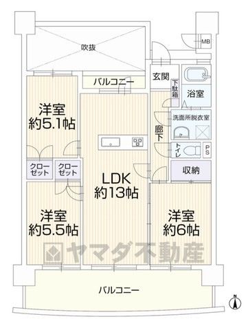 LDK13畳、洋5.1畳、洋5.5畳、洋6畳 |
