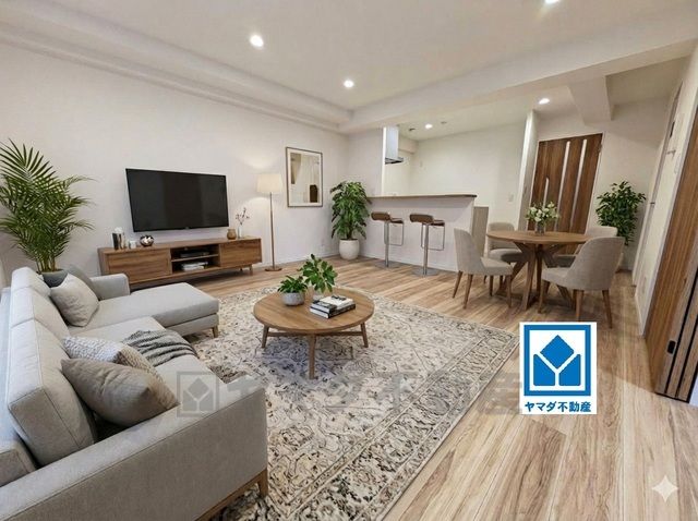 大きな掃き出し窓のあるリビングは、陽光あふれる明るい空間です。ゆったりと寛げる憩いの場となりそうです。