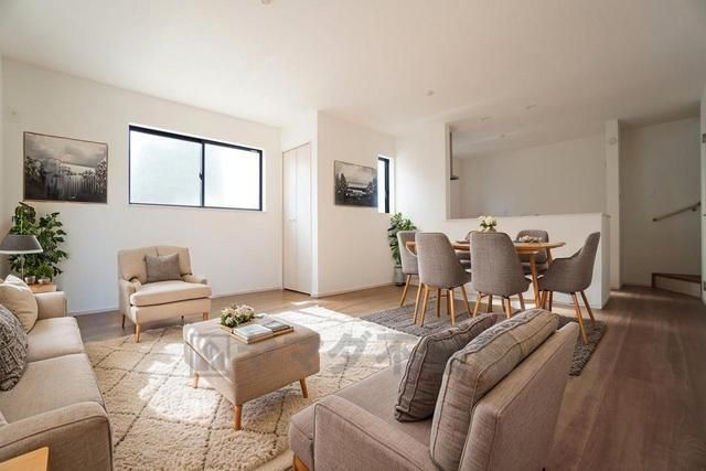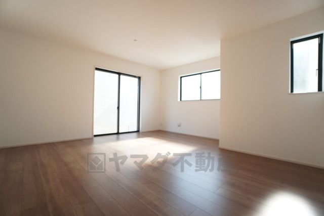 大きな掃き出し窓のあるリビングは、陽光あふれる明るい空間です。ゆったりと寛げる憩いの場となりそうです。