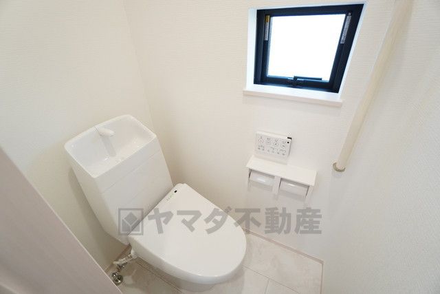 1階2階の2ヶ所にトイレがありますので、忙しい朝にも家族に気を使わず、ゆとりが生まれますね^^ 小窓付きで換気する時に便利です^^