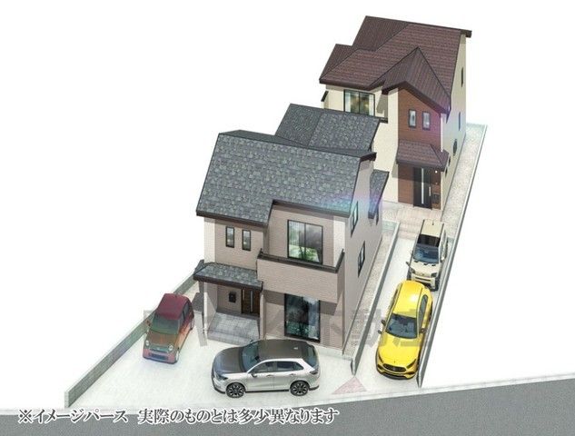 奥がA号棟。完成予想図。現況と異なる場合は現況優先となります。