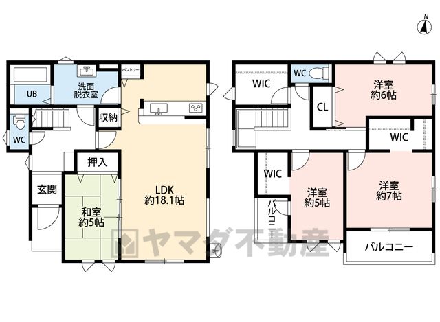 LDK18.1畳(1F)、和5畳(1F)、洋7畳(2F)、洋6畳(2F)、洋5畳(2F) |