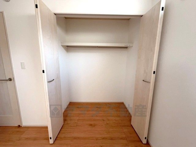 洋室にはハンガーパイプ付きのクローゼットが設けられています。たっぷり収納できるので衣替えの心配もいりませんね^^