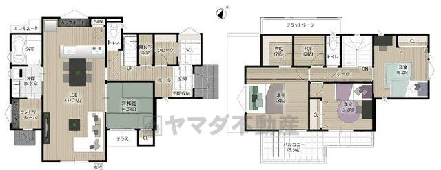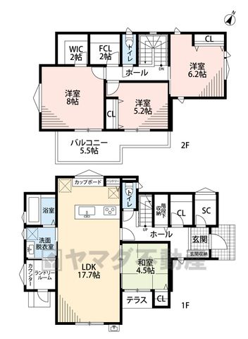LDK17.7畳(1F)、和4.5畳(1F)、洋5.2畳(1F)、洋6.2畳(1F)、洋8畳(1F) |