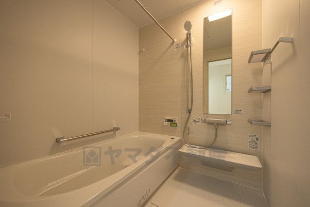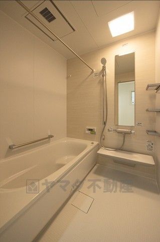 1日の疲れを癒すくつろぎのバスルーム。足を伸ばしてもゆったりと入れるサイズです。お子様と一緒にお風呂に入っても狭くないですね^^