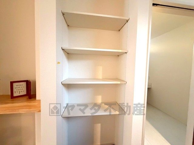 キッチン横には可動棚収納有。食品や日用品のストックにも便利です^^