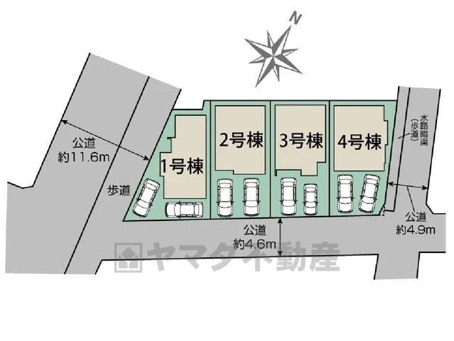 前面道路。南西側11.6m、南東側4.6m公道。スーパー、コンビニまで徒歩約6分圏内^^