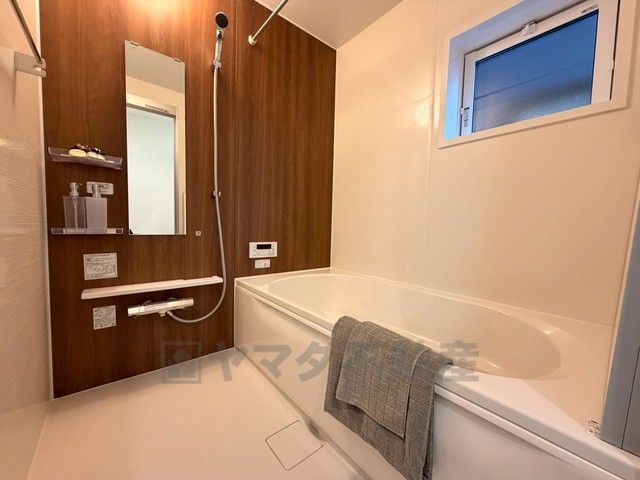 1日の疲れを癒すくつろぎのバスルーム。足を伸ばしてもゆったりと入れるサイズです。お子様と一緒にお風呂に入っても狭くないですね^^