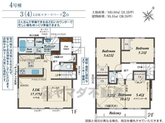 LDK17.3畳(1F)、洋5.2畳(2F)、洋5.6畳(2F)、洋10.6畳(2F) |