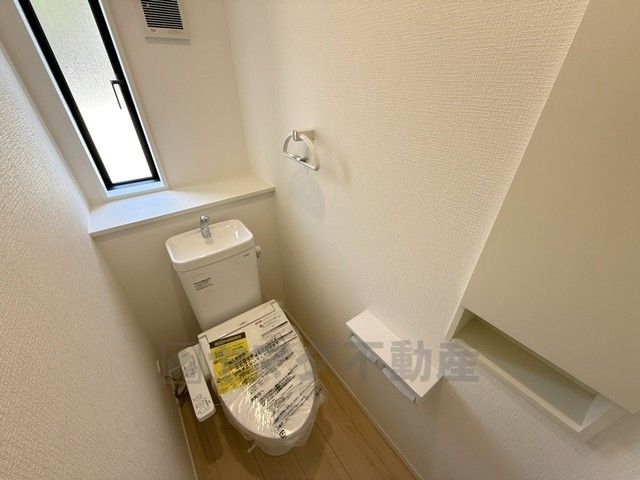 ウォシュレット、暖房便座、節電・節水機能など、使い勝手のよい高機能トイレです。小窓、収納棚付き^^
