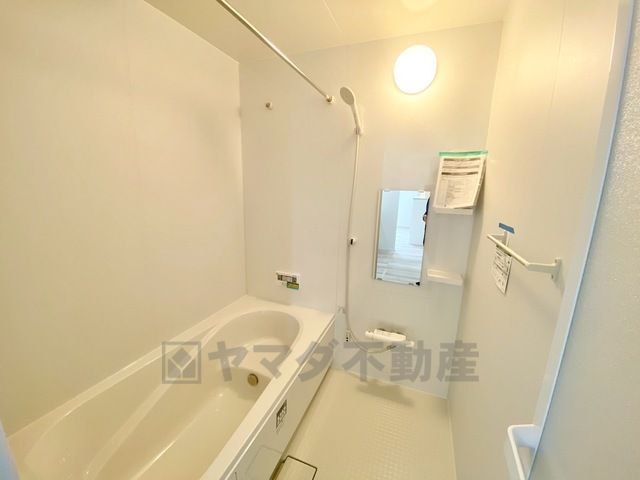 1日の疲れを癒すくつろぎのバスルーム。足を伸ばしてもゆったりと入れるサイズです。お子様と一緒にお風呂に入っても狭くないですね^^