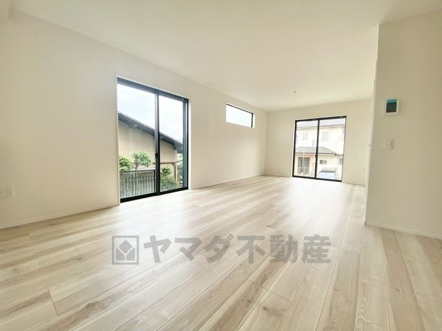 大きな掃き出し窓のあるリビングは、陽光あふれる明るい空間です。ゆったりと寛げる憩いの場となりそうです。