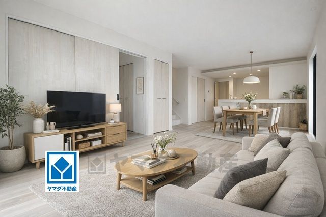 家族が集まる開放的なリビング。思い思いの時間を過ごしたり食事をしたり、素敵な団らんの場になりますね。 家具はCGによるイメージ画像