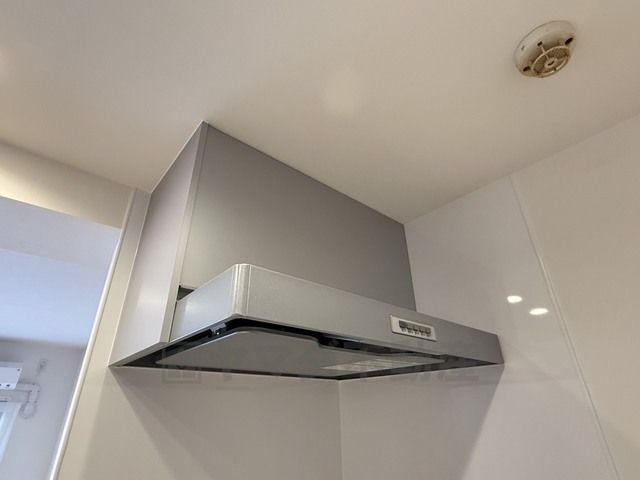 コンロ上には換気扇完備^^調理時の蒸気や匂いが換気扇に誘導され、効率的に排煙ができます^^