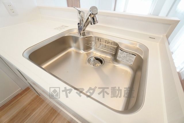 大きなお鍋も楽々洗える幅の広いシンクです^^ステンレスシンクなので簡単にお掃除できますよ。洗剤やスポンジもすっきりできる収納付き。