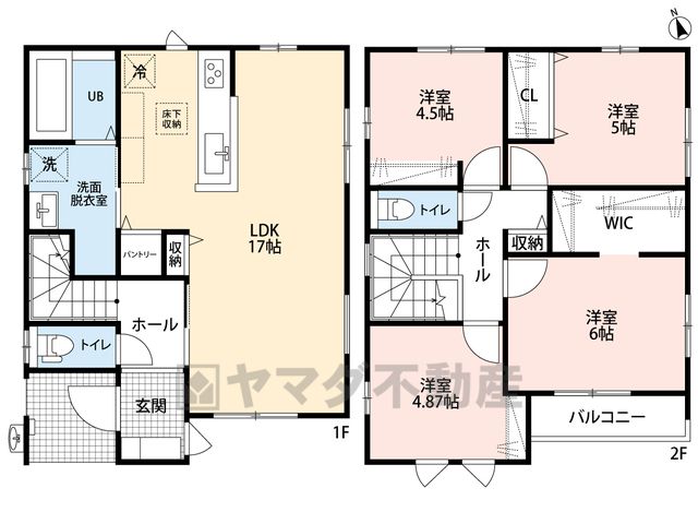LDK17畳(1F)、洋6畳(2F)、洋5畳(2F)、洋4.8畳(2F)、洋4.5畳(2F) |