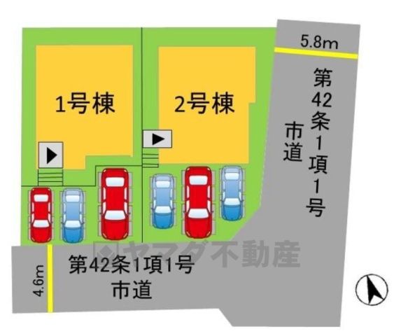 前面道路は南西側約4.6mの公道に面しています。