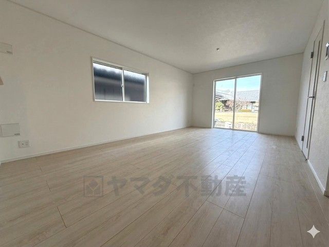 大きな掃き出し窓のあるリビングは、陽光あふれる明るい空間です。ゆったりと寛げる憩いの場となりそうです。