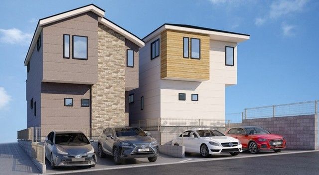 右側が1号棟。完成予想図。現況と異なる場合は現況優先となります。