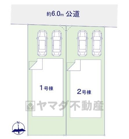 左側が2号棟。完成予想図。現況と異なる場合は現況優先となります。