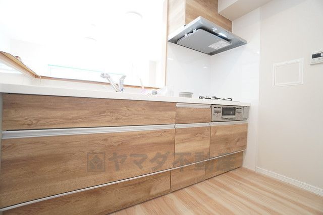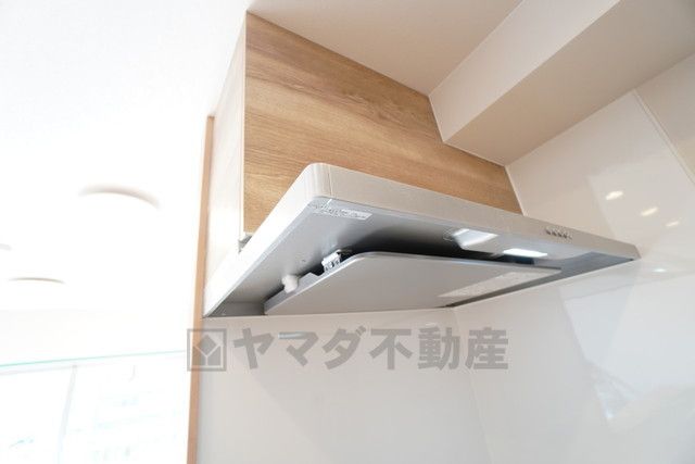 コンロ上には換気扇完備^^調理時の蒸気や匂いが換気扇に誘導され、効率的に排煙ができます^^ リビングのカーテン、ソファ、床などが油でベタついたり、料理の匂いが染み付いたりするのを防いでくれます。