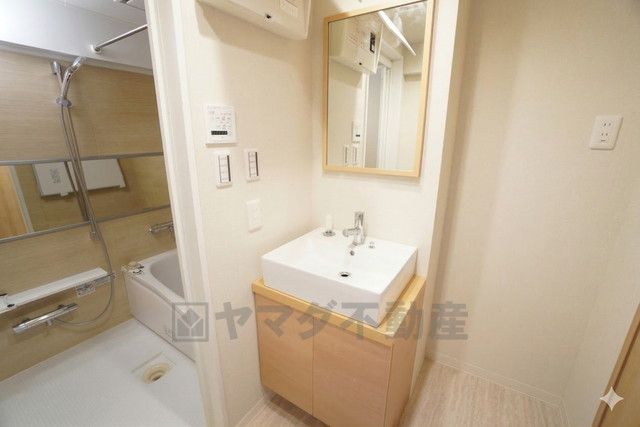コンパクトながらも使い勝手を追求した洗面スペース。大きな鏡と清潔感のあるホワイトのボウルが、朝の時間を爽やかに演出します。リノベーション物件ならではの、新しさと心地よさをぜひ体感してください。