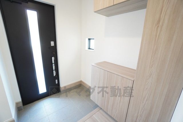 採光も考えられた明るい玄関です。たっぷり収納できるシューズボックス付きなので、家族全員の靴がきれいに整頓できます。