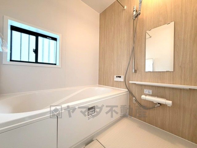 1日の疲れを癒すくつろぎのバスルーム。足を伸ばしてもゆったりと入れるサイズです。お子様と一緒にお風呂に入っても狭くないですね^^