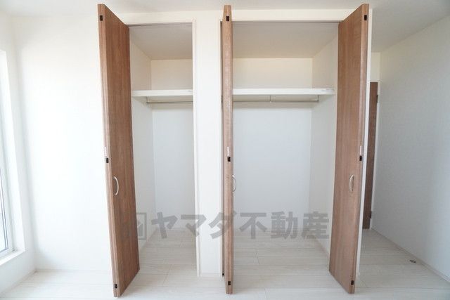 寝室にはハンガーパイプ付きのダブルクローゼットが設けられています。たっぷり収納できるので衣替えの心配もいりませんね^^