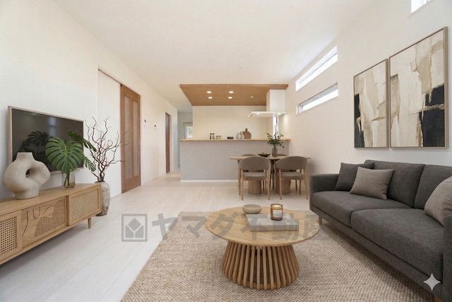 大きな掃き出し窓のあるリビングは、陽光あふれる明るい空間です。ゆったりと寛げる憩いの場となりそうです。