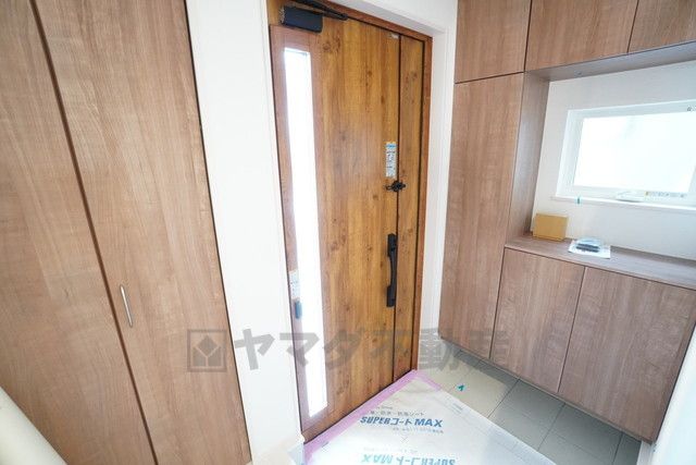 採光も考えられた明るい玄関です。たっぷり収納できるシューズボックス付きなので、家族全員の靴がきれいに整頓できます。