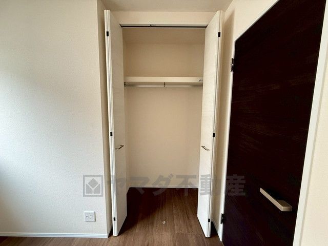 洋室にはハンガーパイプ付きのクローゼットが設けられています。たっぷり収納できるので衣替えの心配もいりませんね^^