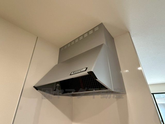 コンロ上には換気扇完備^^すぐ横に小窓が設けられているので、換気扇と合わせてWで換気できます^^