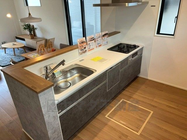 対面式キッチンなのでリビングにいるご家族とコミュニケーションを取りながら洗い物や、お料理が楽しめそうですね^^
