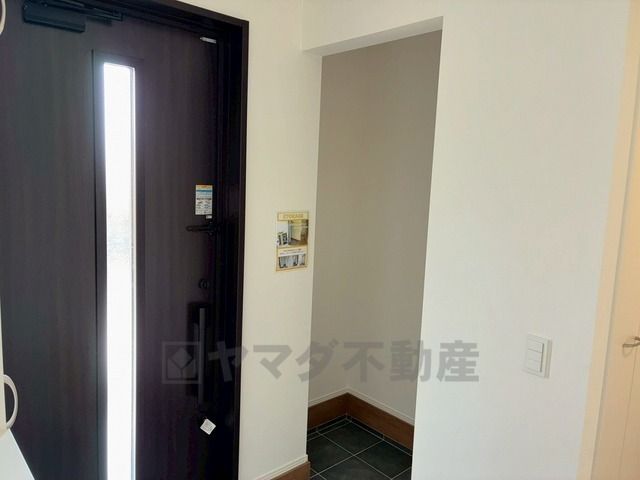 明るい玄関。たっぷり収納できるシューズボックス付きなので、家族全員の靴がきれいに整頓できます。