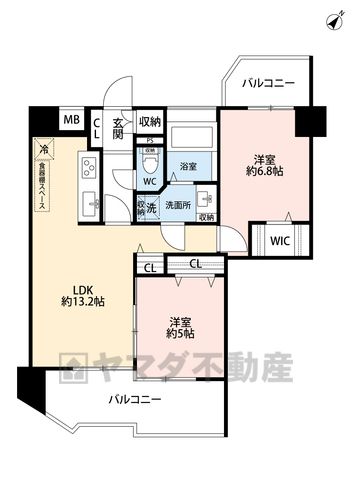 LDK13.2畳、洋6.8畳、洋5畳 |