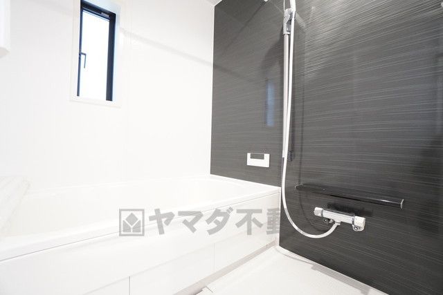 1日の疲れを癒すくつろぎのバスルーム。足を伸ばしてもゆったりと入れるサイズです。お子様と一緒にお風呂に入っても狭くないですね^^