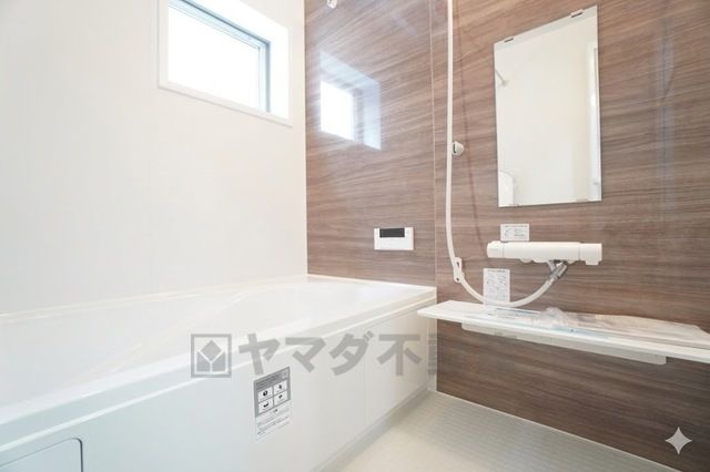 1日の疲れを癒すくつろぎのバスルーム。足を伸ばしてもゆったりと入れるサイズです。お子様と一緒にお風呂に入っても狭くないですね^^