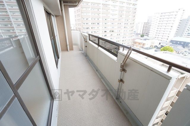 陽当たりの良いバルコニーです。お洗濯やお布団干しはもちろん、日光浴スペースにも^^ 南東から北東にかけてリビングと隣洋室を囲うように配置。