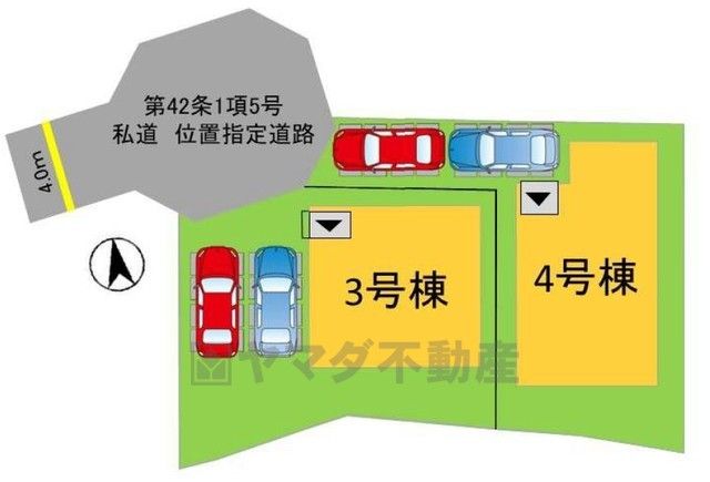 前面道路は西側4m私道に面しています^^